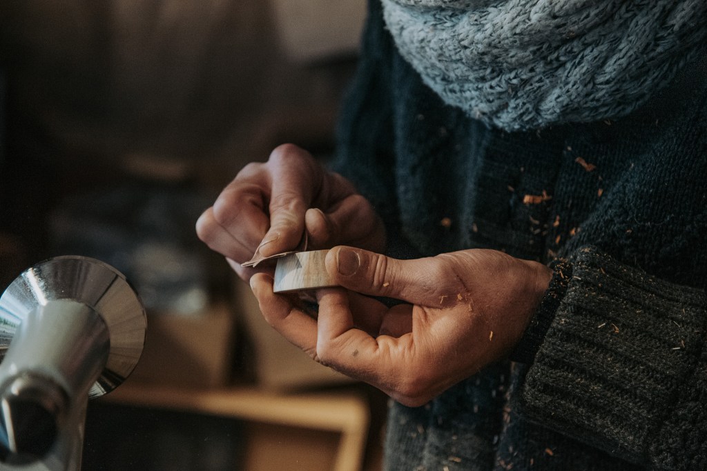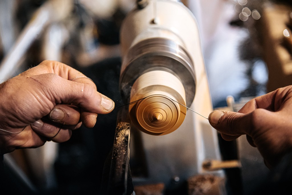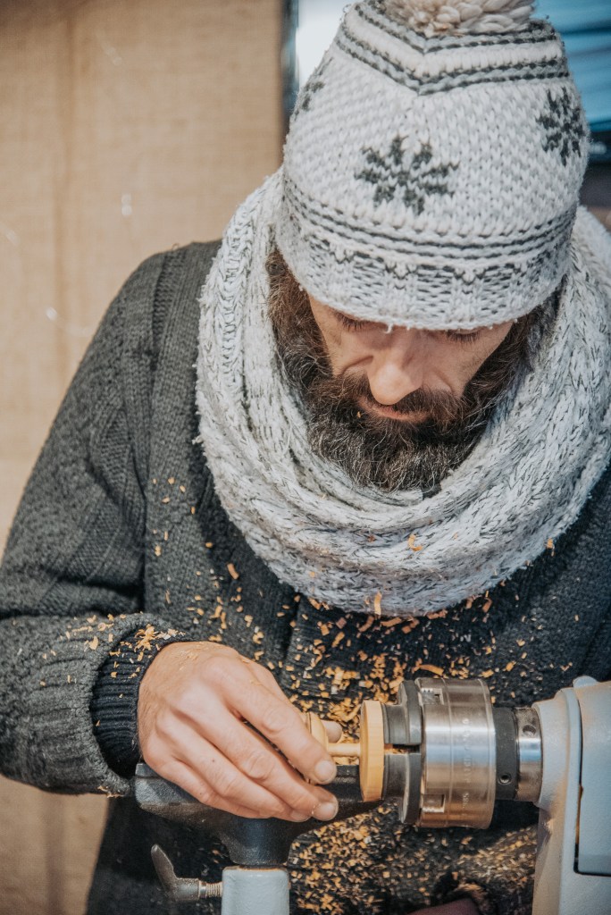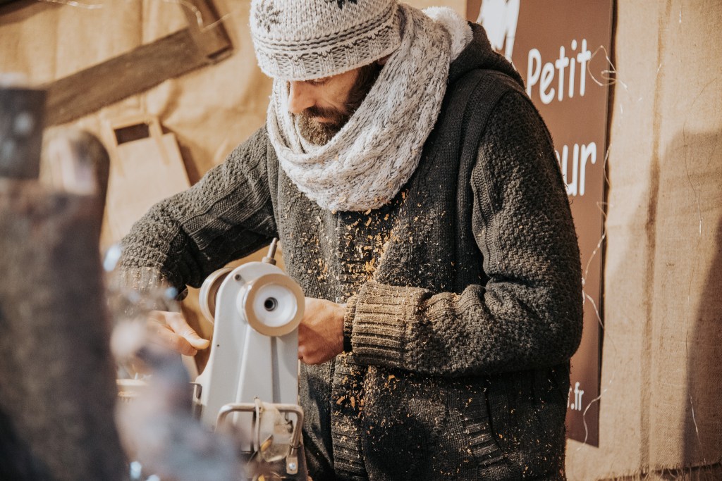 Devant vous, il travaille le bois, le façonne. Pour leur plaisir mais surtout pour le votre !