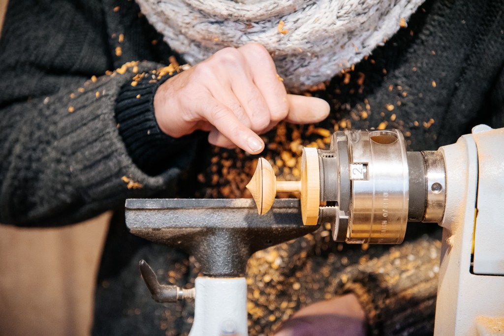 Cette année, petit plus, et pour répondre à la demande des clients, ils ont amené le tour à bois au marché, pour une fabrication en direct, sous les yeux des badauds.